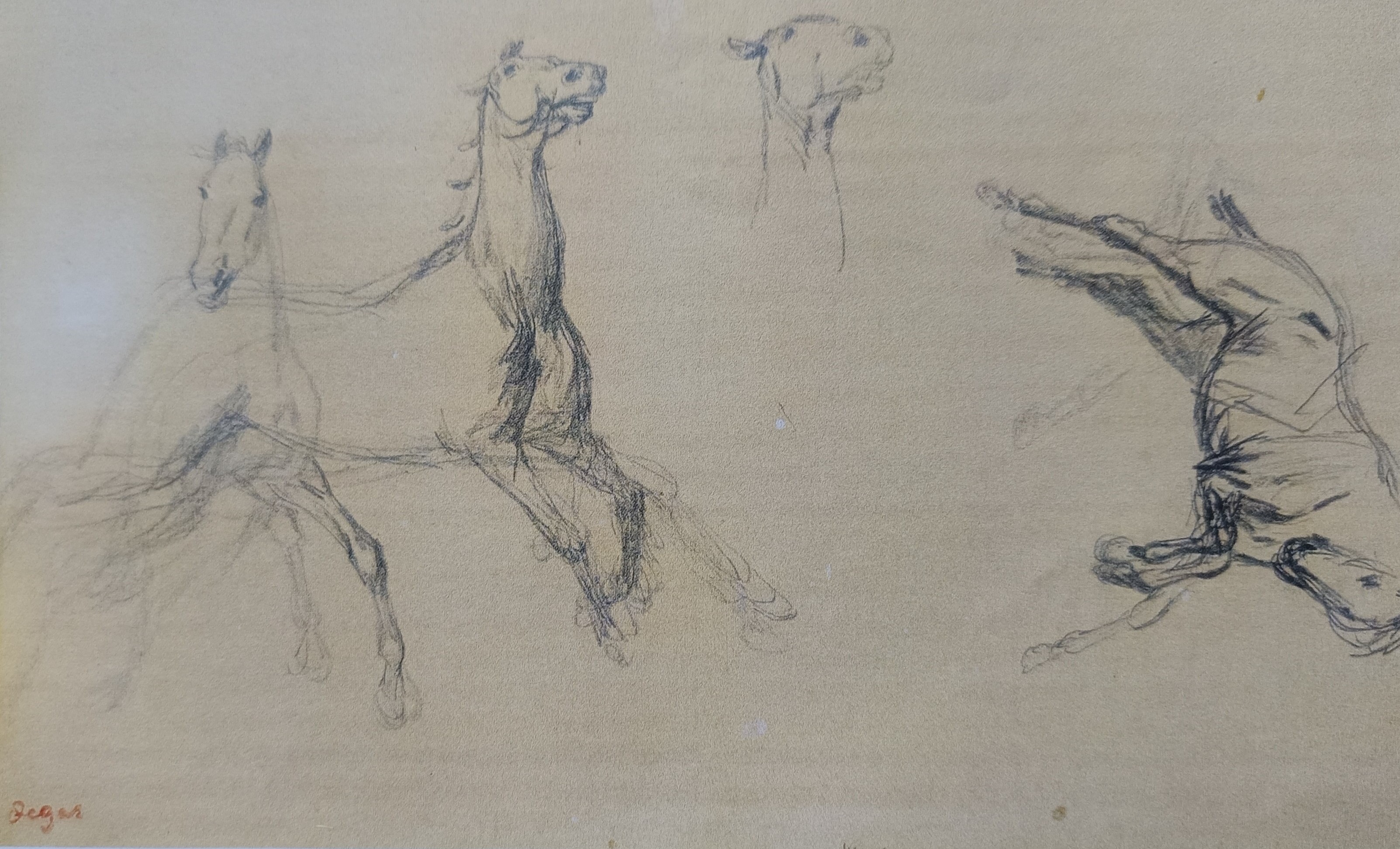 The digital catalogue raisonné of the 1506 drawings by Degas that we are publishing naturally complements the one of the 1759 paintings and pastels already online. Never undertaken before, this catalogue raisonné enhances our knowledge of an artist for whom drawing was a major art form. Isn't his passion for Ingres proof of this? Through the variety of subjects and techniques, Degas gives drawing an essential place in his art, often at the basis of his projects and their evolution. Like the digital catalogue raisonné of paintings and pastels, the one for drawings is regularly expanded and updated. It includes all the subjects he treats in his paintings and pastels. More than 1200 drawings were found in his studio in December 1917 and were inventoried. They were then published and reproduced in the four catalogues of the posthumous sales of 1918-1919. Generally unsigned, they were stamped after these sales. This leads us to believe that Degas did not trade them, as his paintings and pastels were more sought after at the time. Our estimates are currently based on the inventories (Succession Degas, Nepveu-Degas) and on the four posthumous sales. During the sales, drawings were sold in lots, not described and not reproduced, which complicates any estimation, especially since the same stamps from the posthumous sales were also affixed to these separately sold drawings.