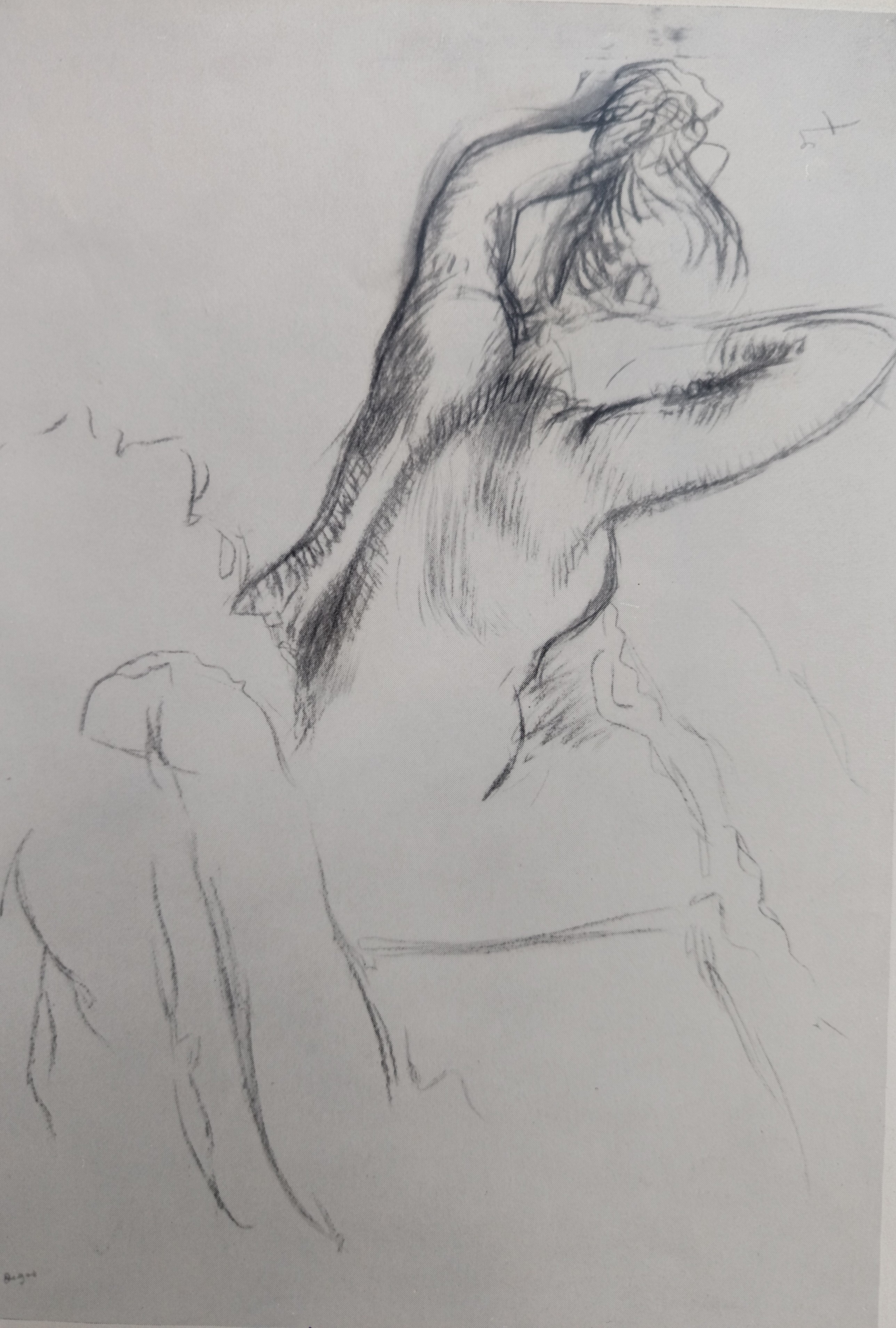 The digital catalogue raisonné of the 1506 drawings by Degas that we are publishing naturally complements the one of the 1759 paintings and pastels already online. Never undertaken before, this catalogue raisonné enhances our knowledge of an artist for whom drawing was a major art form. Isn't his passion for Ingres proof of this? Through the variety of subjects and techniques, Degas gives drawing an essential place in his art, often at the basis of his projects and their evolution. Like the digital catalogue raisonné of paintings and pastels, the one for drawings is regularly expanded and updated. It includes all the subjects he treats in his paintings and pastels. More than 1200 drawings were found in his studio in December 1917 and were inventoried. They were then published and reproduced in the four catalogues of the posthumous sales of 1918-1919. Generally unsigned, they were stamped after these sales. This leads us to believe that Degas did not trade them, as his paintings and pastels were more sought after at the time. Our estimates are currently based on the inventories (Succession Degas, Nepveu-Degas) and on the four posthumous sales. During the sales, drawings were sold in lots, not described and not reproduced, which complicates any estimation, especially since the same stamps from the posthumous sales were also affixed to these separately sold drawings.