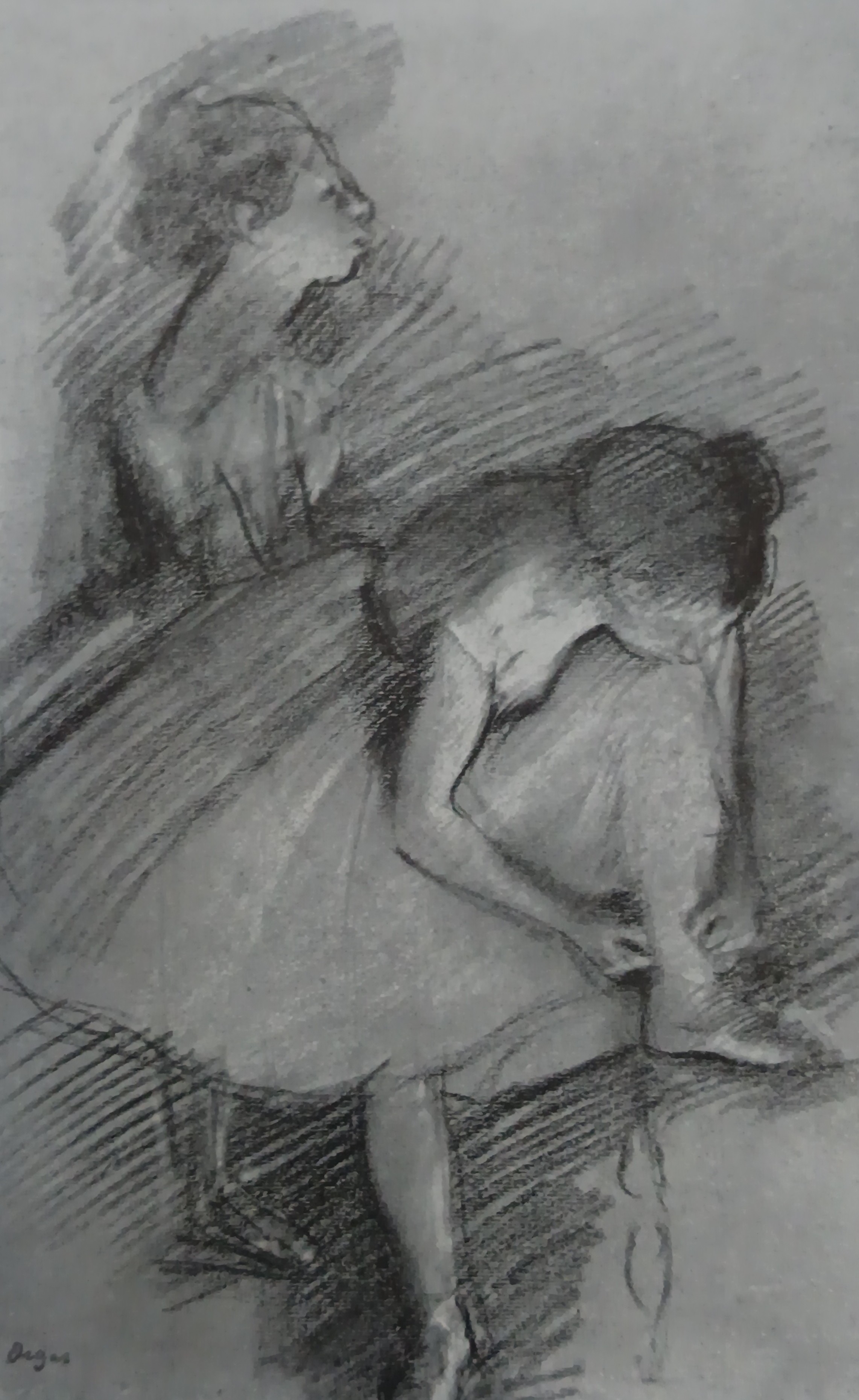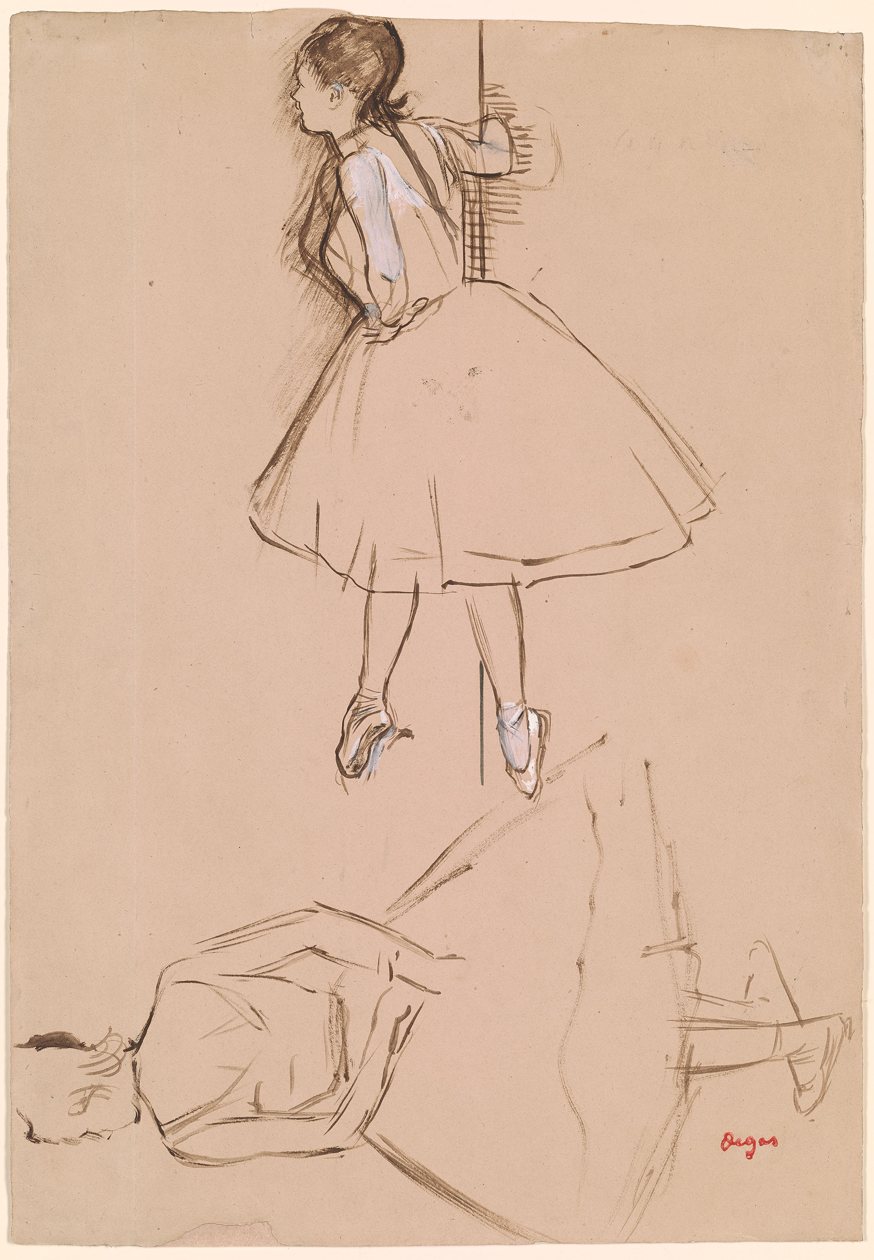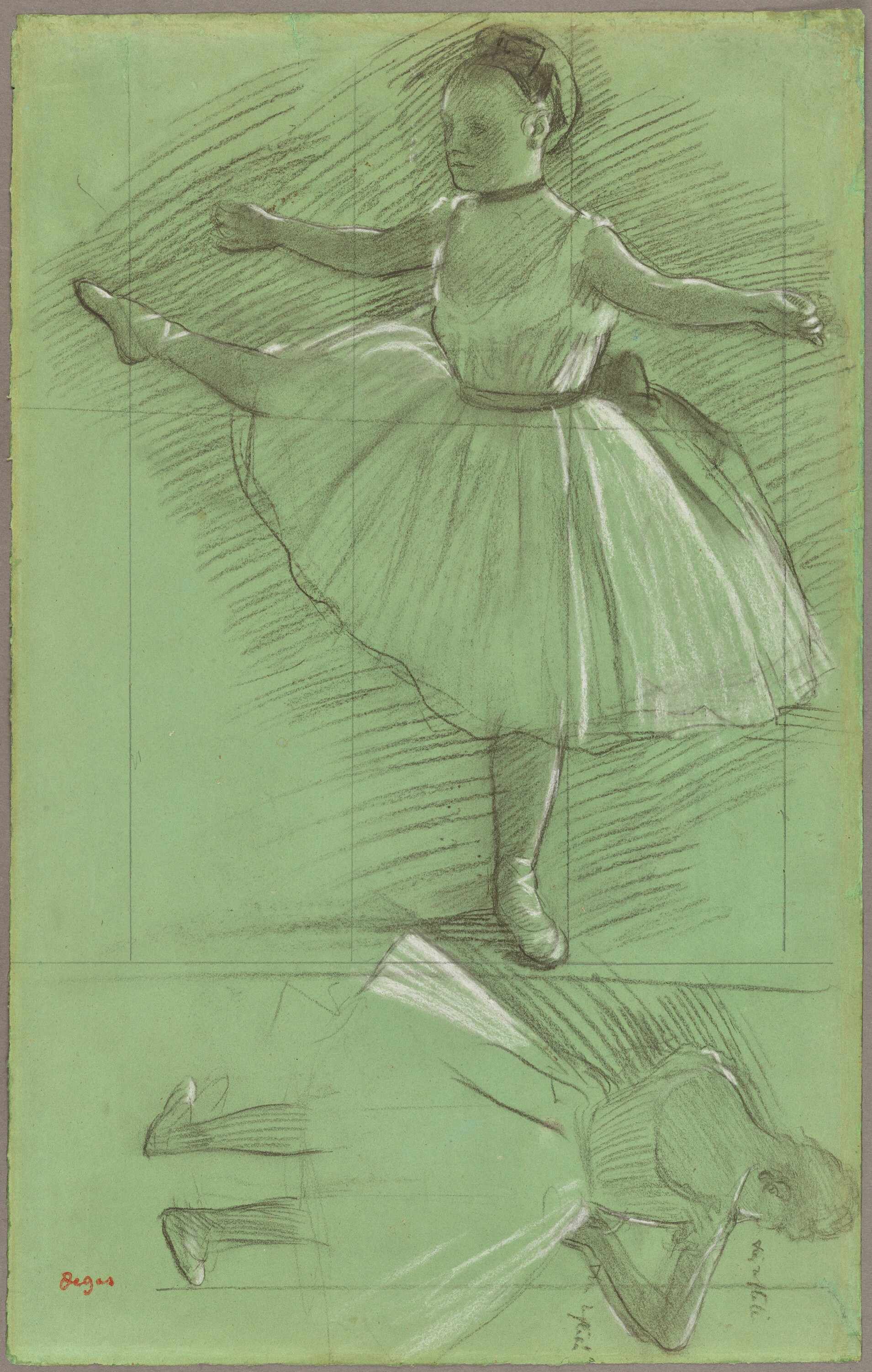 The digital catalogue raisonné of the 1506 drawings by Degas that we are publishing naturally complements the one of the 1759 paintings and pastels already online. Never undertaken before, this catalogue raisonné enhances our knowledge of an artist for whom drawing was a major art form. Isn't his passion for Ingres proof of this? Through the variety of subjects and techniques, Degas gives drawing an essential place in his art, often at the basis of his projects and their evolution. Like the digital catalogue raisonné of paintings and pastels, the one for drawings is regularly expanded and updated. It includes all the subjects he treats in his paintings and pastels. More than 1200 drawings were found in his studio in December 1917 and were inventoried. They were then published and reproduced in the four catalogues of the posthumous sales of 1918-1919. Generally unsigned, they were stamped after these sales. This leads us to believe that Degas did not trade them, as his paintings and pastels were more sought after at the time. Our estimates are currently based on the inventories (Succession Degas, Nepveu-Degas) and on the four posthumous sales. During the sales, drawings were sold in lots, not described and not reproduced, which complicates any estimation, especially since the same stamps from the posthumous sales were also affixed to these separately sold drawings.