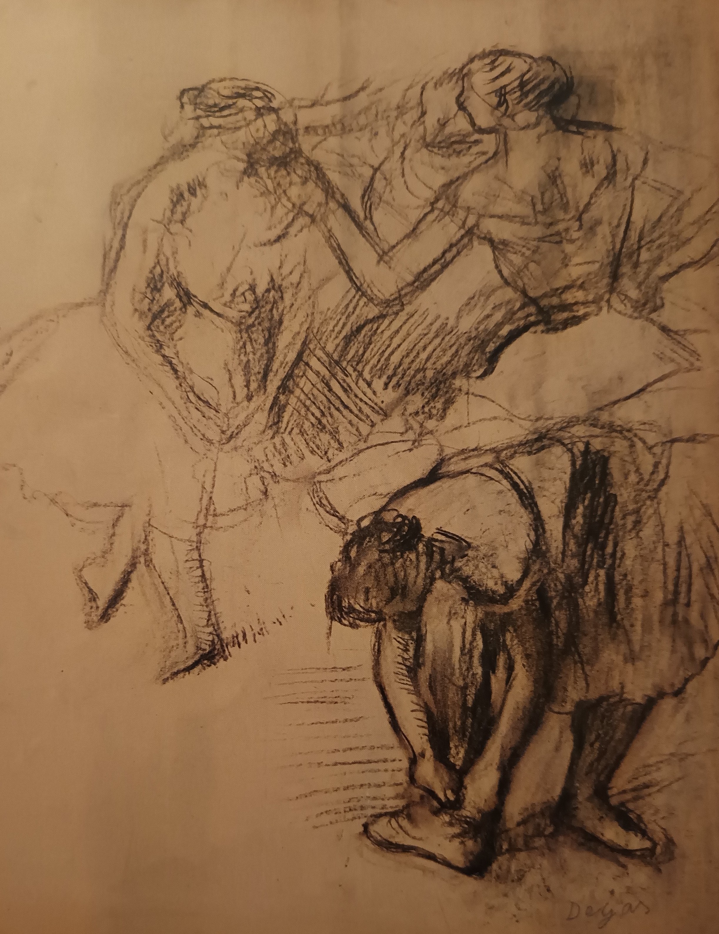 The digital catalogue raisonné of the 1506 drawings by Degas that we are publishing naturally complements the one of the 1759 paintings and pastels already online. Never undertaken before, this catalogue raisonné enhances our knowledge of an artist for whom drawing was a major art form. Isn't his passion for Ingres proof of this? Through the variety of subjects and techniques, Degas gives drawing an essential place in his art, often at the basis of his projects and their evolution. Like the digital catalogue raisonné of paintings and pastels, the one for drawings is regularly expanded and updated. It includes all the subjects he treats in his paintings and pastels. More than 1200 drawings were found in his studio in December 1917 and were inventoried. They were then published and reproduced in the four catalogues of the posthumous sales of 1918-1919. Generally unsigned, they were stamped after these sales. This leads us to believe that Degas did not trade them, as his paintings and pastels were more sought after at the time. Our estimates are currently based on the inventories (Succession Degas, Nepveu-Degas) and on the four posthumous sales. During the sales, drawings were sold in lots, not described and not reproduced, which complicates any estimation, especially since the same stamps from the posthumous sales were also affixed to these separately sold drawings.