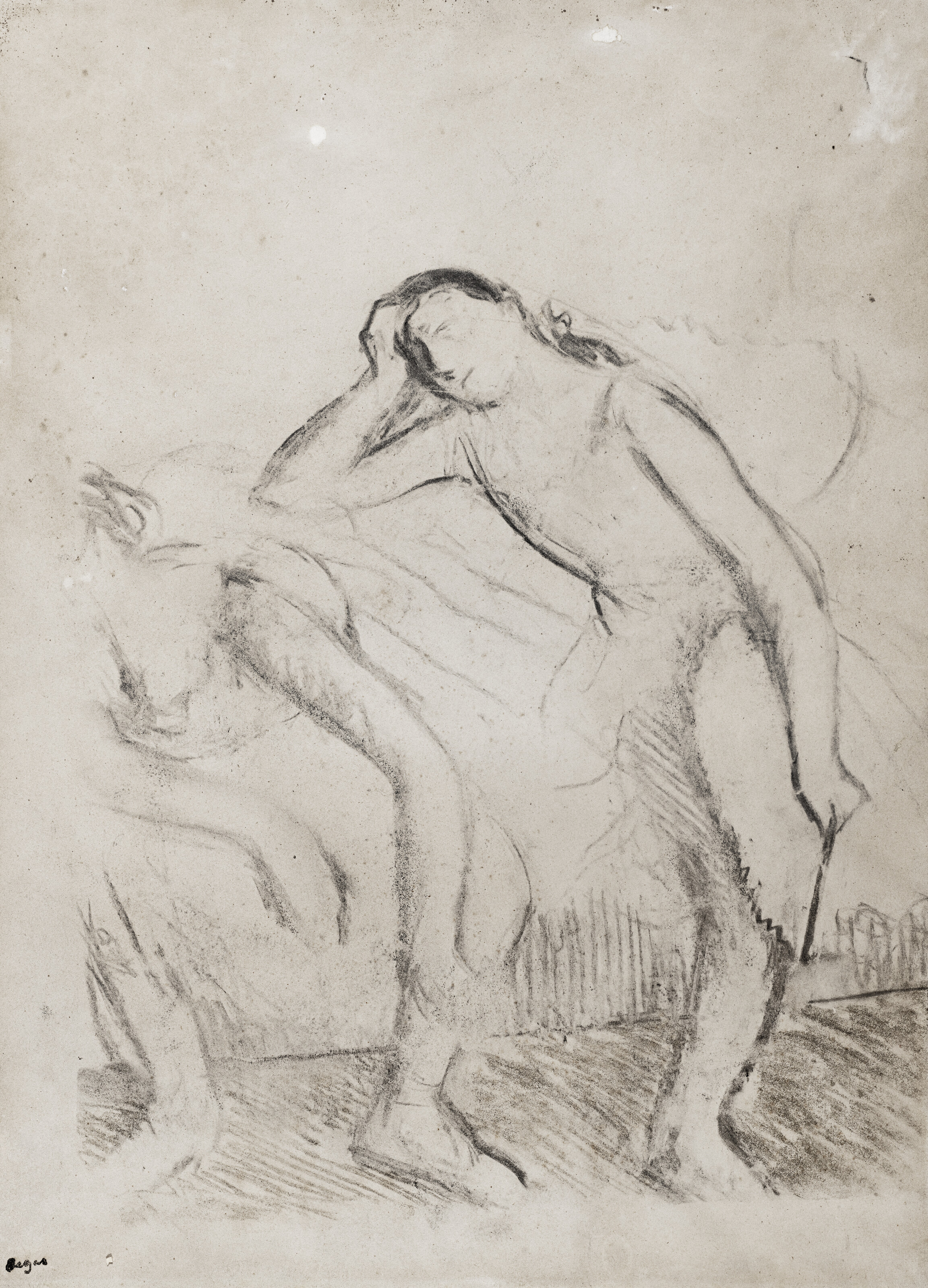 The digital catalogue raisonné of the 1506 drawings by Degas that we are publishing naturally complements the one of the 1759 paintings and pastels already online. Never undertaken before, this catalogue raisonné enhances our knowledge of an artist for whom drawing was a major art form. Isn't his passion for Ingres proof of this? Through the variety of subjects and techniques, Degas gives drawing an essential place in his art, often at the basis of his projects and their evolution. Like the digital catalogue raisonné of paintings and pastels, the one for drawings is regularly expanded and updated. It includes all the subjects he treats in his paintings and pastels. More than 1200 drawings were found in his studio in December 1917 and were inventoried. They were then published and reproduced in the four catalogues of the posthumous sales of 1918-1919. Generally unsigned, they were stamped after these sales. This leads us to believe that Degas did not trade them, as his paintings and pastels were more sought after at the time. Our estimates are currently based on the inventories (Succession Degas, Nepveu-Degas) and on the four posthumous sales. During the sales, drawings were sold in lots, not described and not reproduced, which complicates any estimation, especially since the same stamps from the posthumous sales were also affixed to these separately sold drawings.