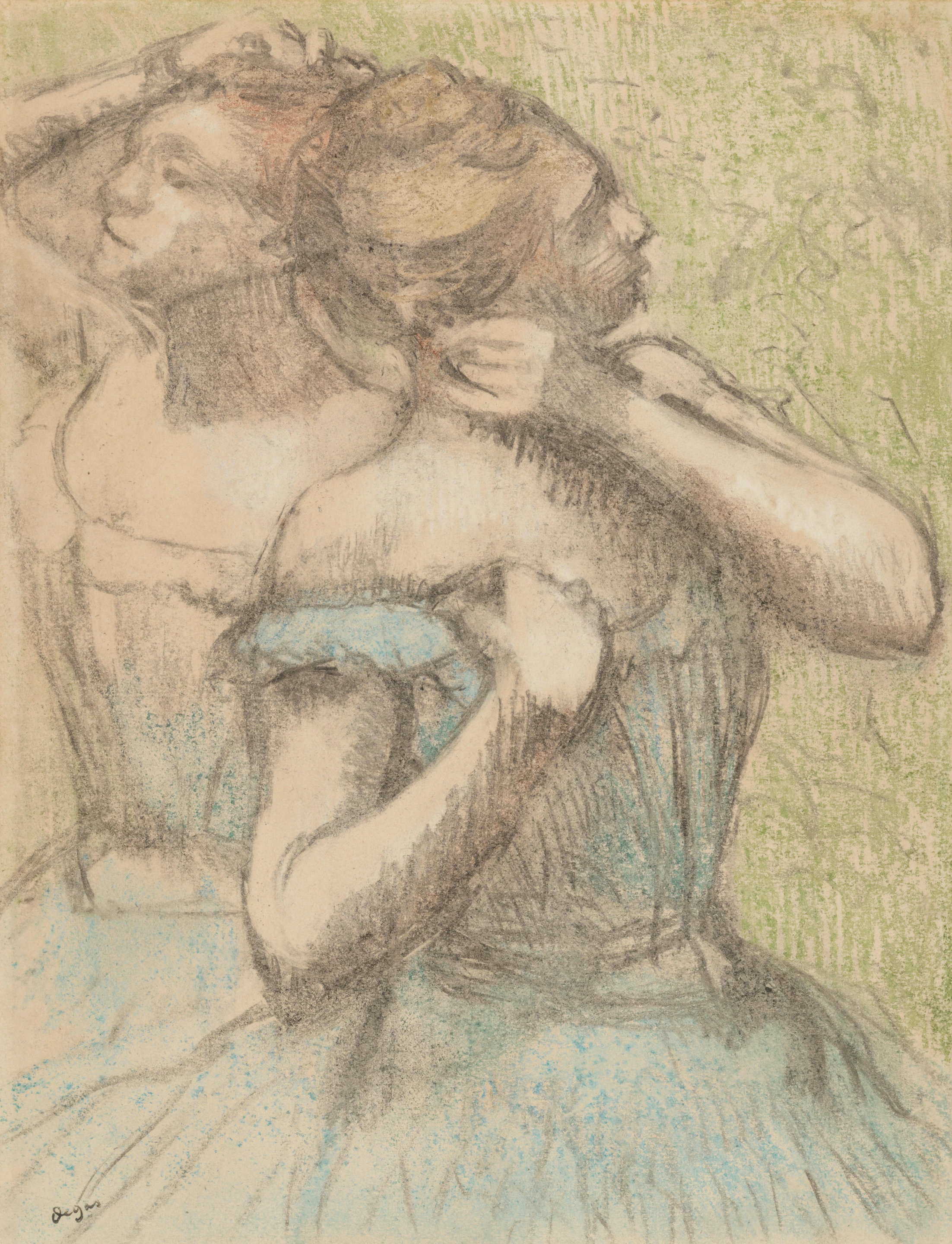 The digital catalogue raisonné of the 1506 drawings by Degas that we are publishing naturally complements the one of the 1759 paintings and pastels already online. Never undertaken before, this catalogue raisonné enhances our knowledge of an artist for whom drawing was a major art form. Isn't his passion for Ingres proof of this? Through the variety of subjects and techniques, Degas gives drawing an essential place in his art, often at the basis of his projects and their evolution. Like the digital catalogue raisonné of paintings and pastels, the one for drawings is regularly expanded and updated. It includes all the subjects he treats in his paintings and pastels. More than 1200 drawings were found in his studio in December 1917 and were inventoried. They were then published and reproduced in the four catalogues of the posthumous sales of 1918-1919. Generally unsigned, they were stamped after these sales. This leads us to believe that Degas did not trade them, as his paintings and pastels were more sought after at the time. Our estimates are currently based on the inventories (Succession Degas, Nepveu-Degas) and on the four posthumous sales. During the sales, drawings were sold in lots, not described and not reproduced, which complicates any estimation, especially since the same stamps from the posthumous sales were also affixed to these separately sold drawings.