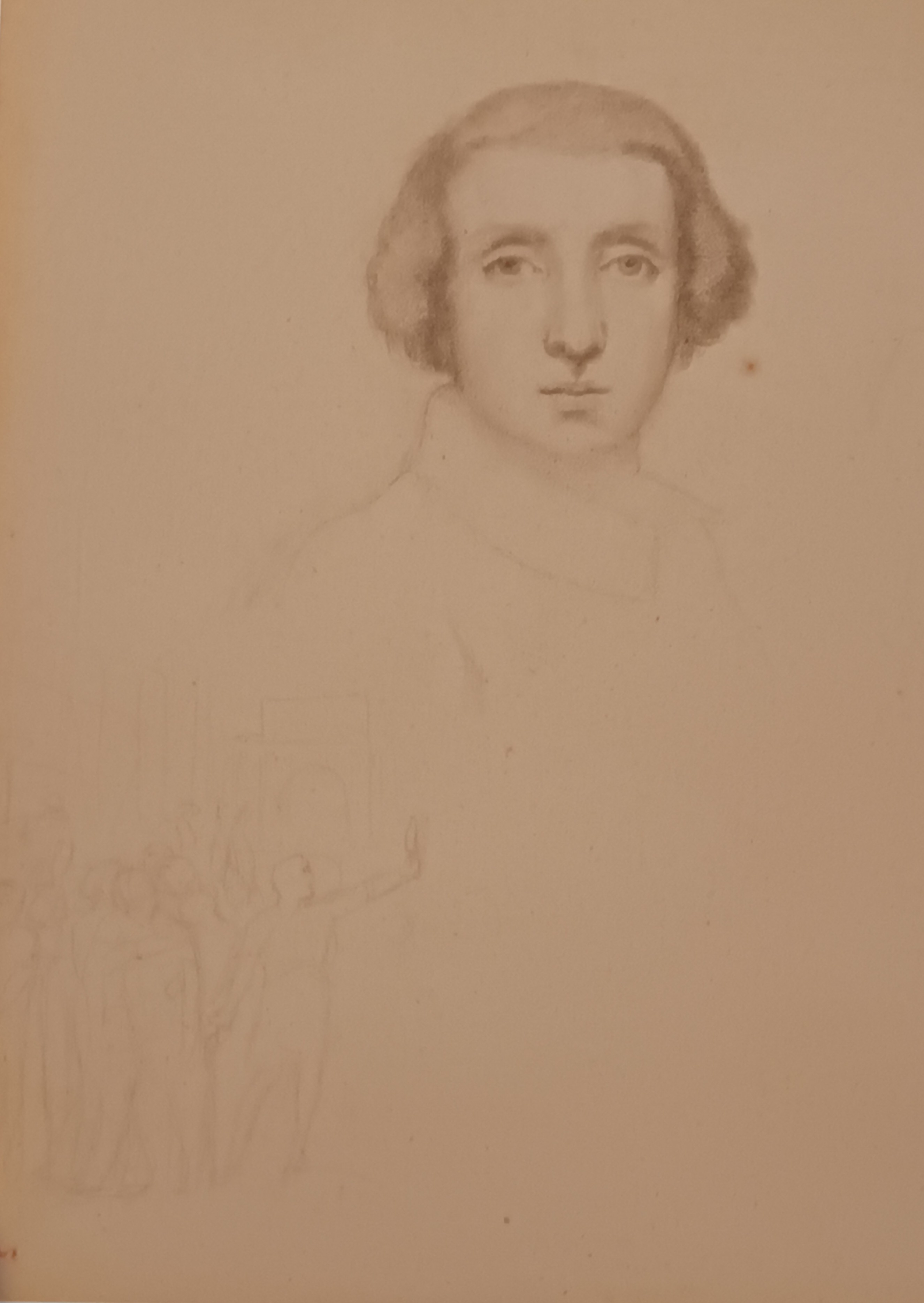 28.8 × 22 cm, Sanguine, crayon graphite avec rehauts d'aquarelle