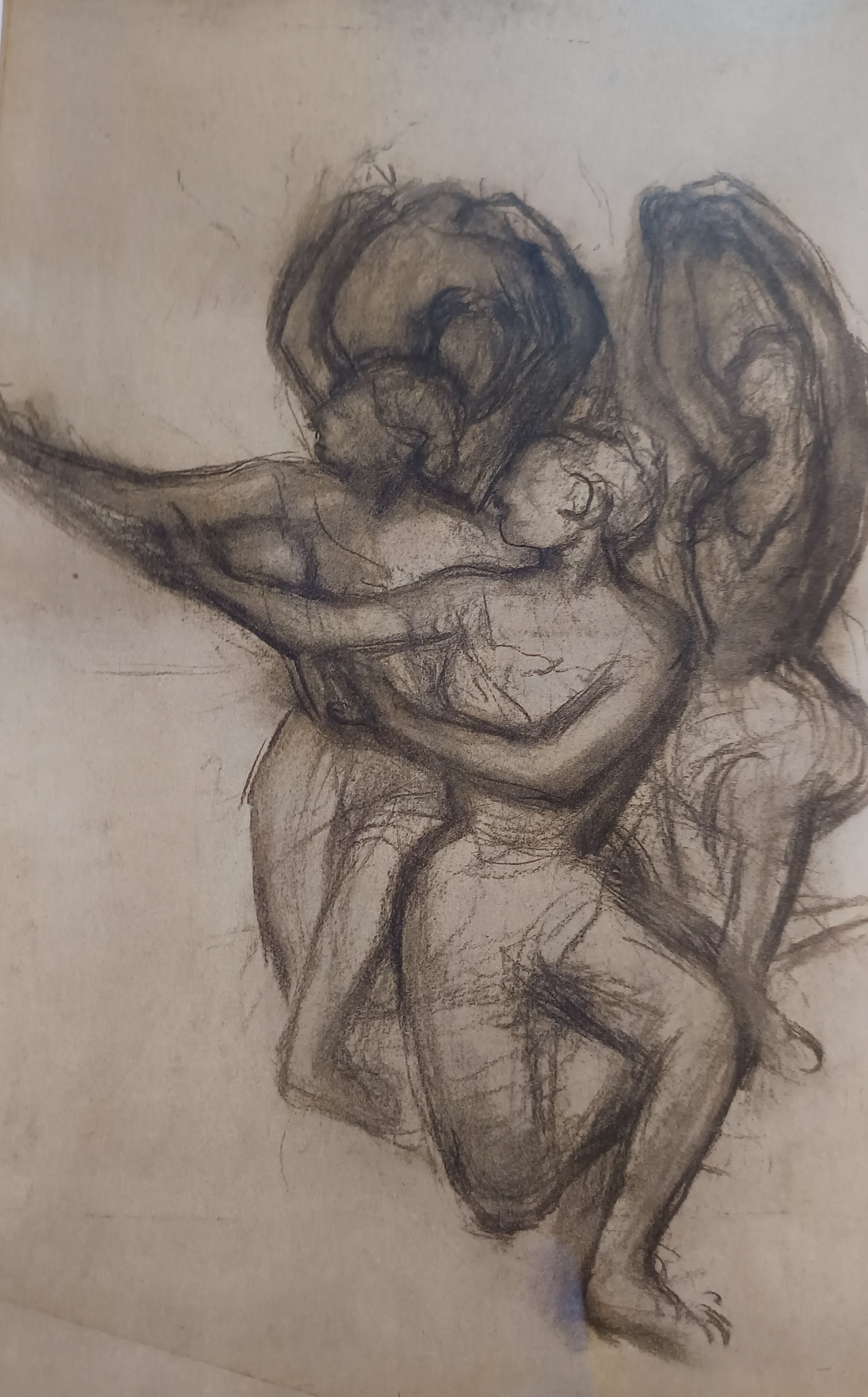 39 × 63.8 cm, Fusain avec touches de pastel rose et brun