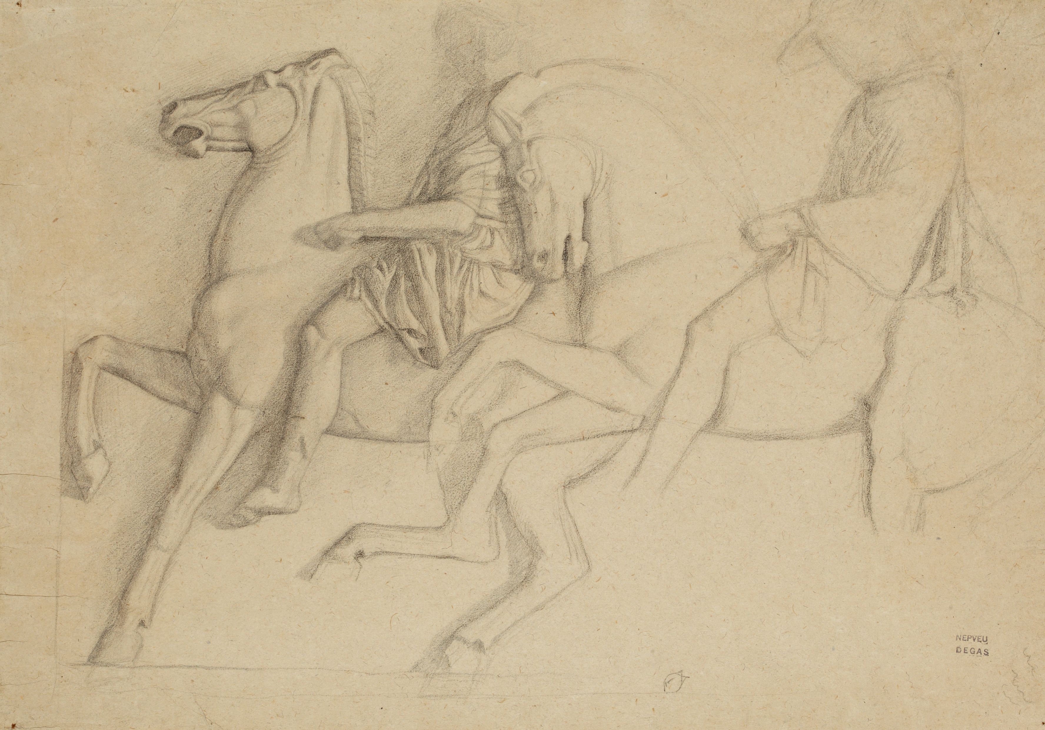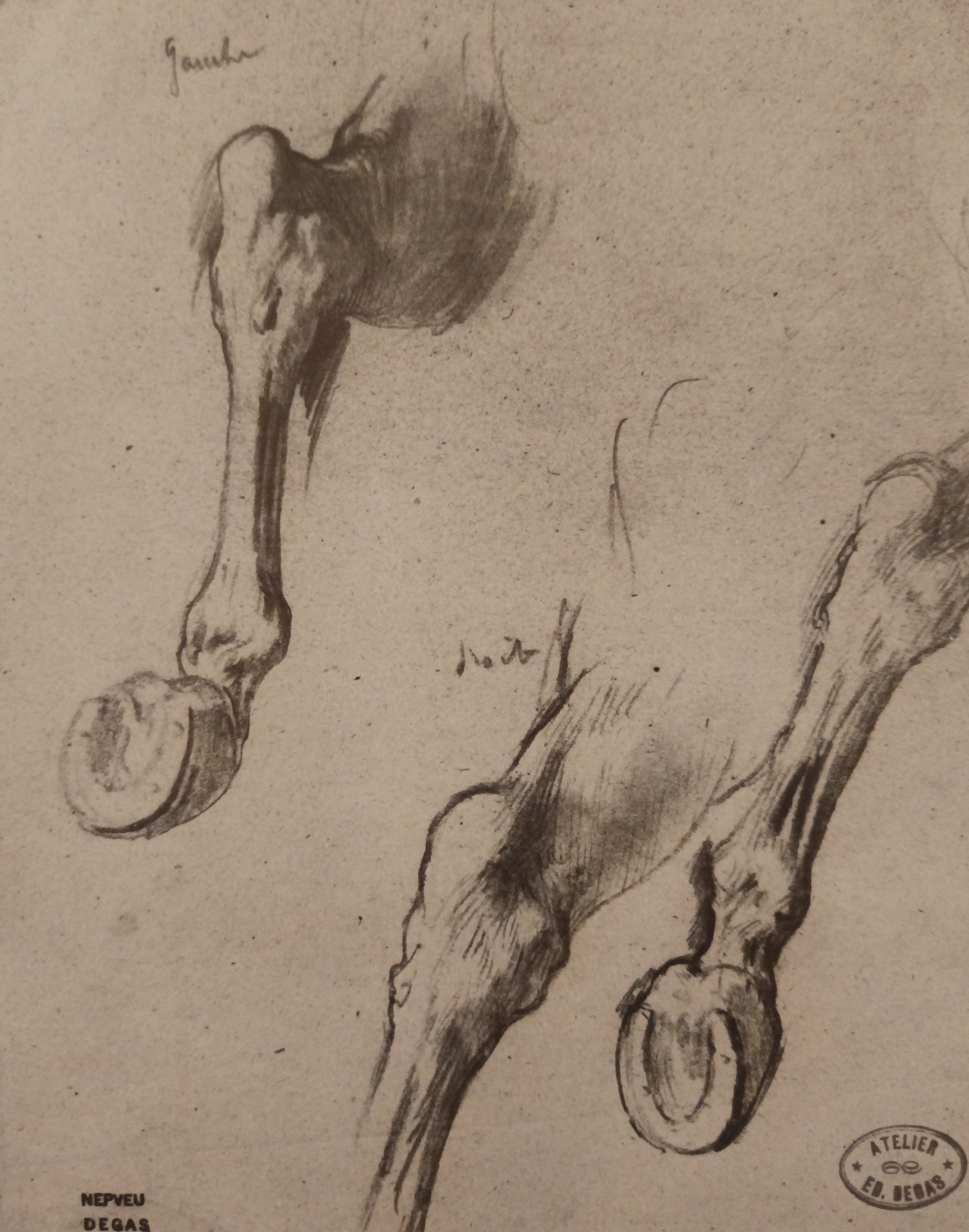 The digital catalogue raisonné of the 1506 drawings by Degas that we are publishing naturally complements the one of the 1759 paintings and pastels already online. Never undertaken before, this catalogue raisonné enhances our knowledge of an artist for whom drawing was a major art form. Isn't his passion for Ingres proof of this? Through the variety of subjects and techniques, Degas gives drawing an essential place in his art, often at the basis of his projects and their evolution. Like the digital catalogue raisonné of paintings and pastels, the one for drawings is regularly expanded and updated. It includes all the subjects he treats in his paintings and pastels. More than 1200 drawings were found in his studio in December 1917 and were inventoried. They were then published and reproduced in the four catalogues of the posthumous sales of 1918-1919. Generally unsigned, they were stamped after these sales. This leads us to believe that Degas did not trade them, as his paintings and pastels were more sought after at the time. Our estimates are currently based on the inventories (Succession Degas, Nepveu-Degas) and on the four posthumous sales. During the sales, drawings were sold in lots, not described and not reproduced, which complicates any estimation, especially since the same stamps from the posthumous sales were also affixed to these separately sold drawings.