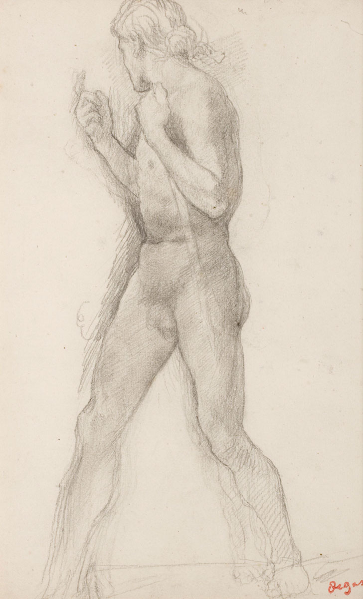 The digital catalogue raisonné of the 1506 drawings by Degas that we are publishing naturally complements the one of the 1759 paintings and pastels already online. Never undertaken before, this catalogue raisonné enhances our knowledge of an artist for whom drawing was a major art form. Isn't his passion for Ingres proof of this? Through the variety of subjects and techniques, Degas gives drawing an essential place in his art, often at the basis of his projects and their evolution. Like the digital catalogue raisonné of paintings and pastels, the one for drawings is regularly expanded and updated. It includes all the subjects he treats in his paintings and pastels. More than 1200 drawings were found in his studio in December 1917 and were inventoried. They were then published and reproduced in the four catalogues of the posthumous sales of 1918-1919. Generally unsigned, they were stamped after these sales. This leads us to believe that Degas did not trade them, as his paintings and pastels were more sought after at the time. Our estimates are currently based on the inventories (Succession Degas, Nepveu-Degas) and on the four posthumous sales. During the sales, drawings were sold in lots, not described and not reproduced, which complicates any estimation, especially since the same stamps from the posthumous sales were also affixed to these separately sold drawings.