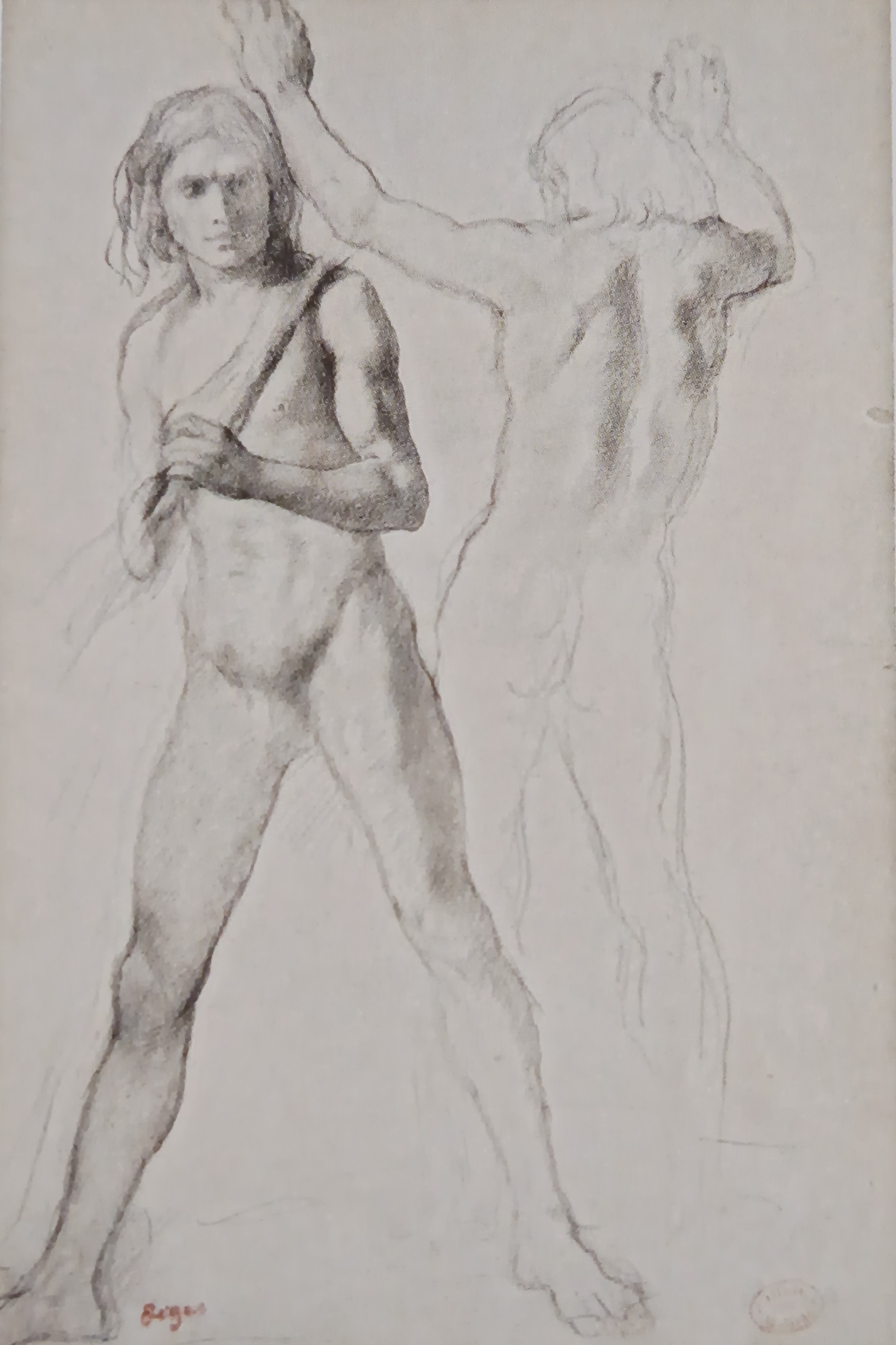 The digital catalogue raisonné of the 1506 drawings by Degas that we are publishing naturally complements the one of the 1759 paintings and pastels already online. Never undertaken before, this catalogue raisonné enhances our knowledge of an artist for whom drawing was a major art form. Isn't his passion for Ingres proof of this? Through the variety of subjects and techniques, Degas gives drawing an essential place in his art, often at the basis of his projects and their evolution. Like the digital catalogue raisonné of paintings and pastels, the one for drawings is regularly expanded and updated. It includes all the subjects he treats in his paintings and pastels. More than 1200 drawings were found in his studio in December 1917 and were inventoried. They were then published and reproduced in the four catalogues of the posthumous sales of 1918-1919. Generally unsigned, they were stamped after these sales. This leads us to believe that Degas did not trade them, as his paintings and pastels were more sought after at the time. Our estimates are currently based on the inventories (Succession Degas, Nepveu-Degas) and on the four posthumous sales. During the sales, drawings were sold in lots, not described and not reproduced, which complicates any estimation, especially since the same stamps from the posthumous sales were also affixed to these separately sold drawings.