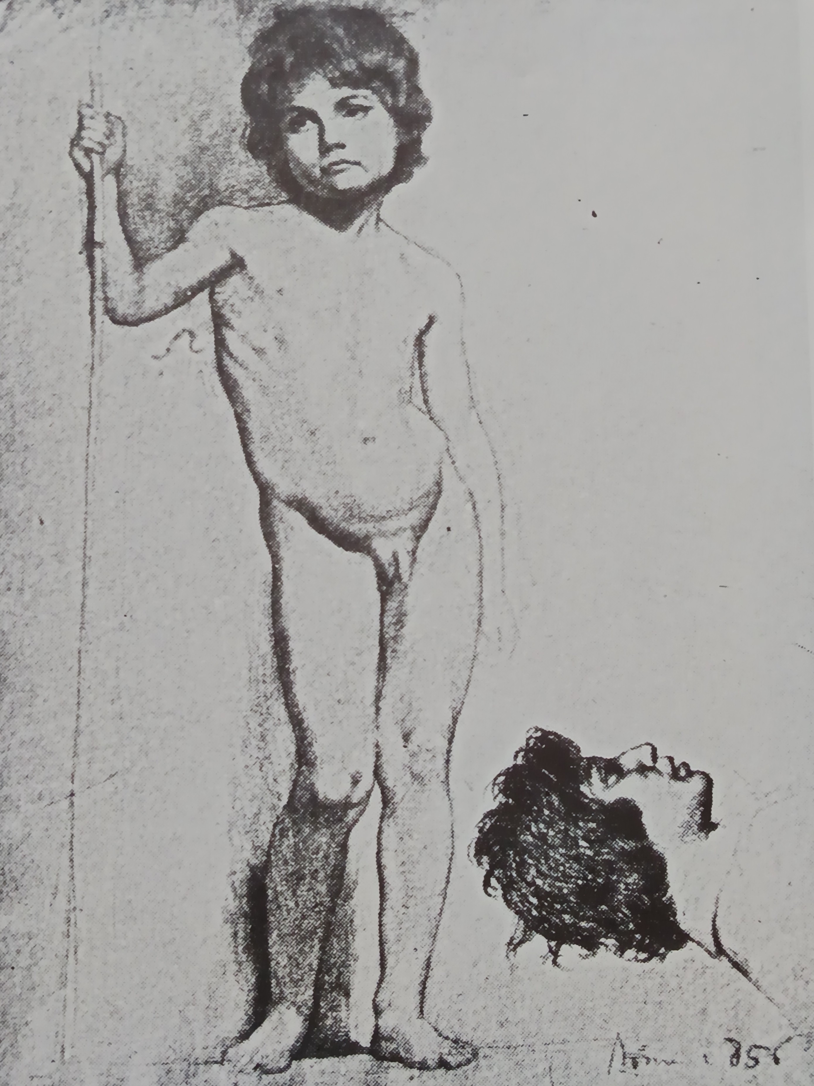 25.2 × 19 cm, Dessin au crayon gras rehaussé de pastel