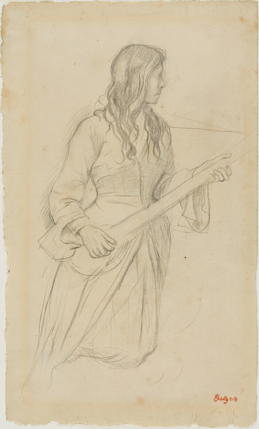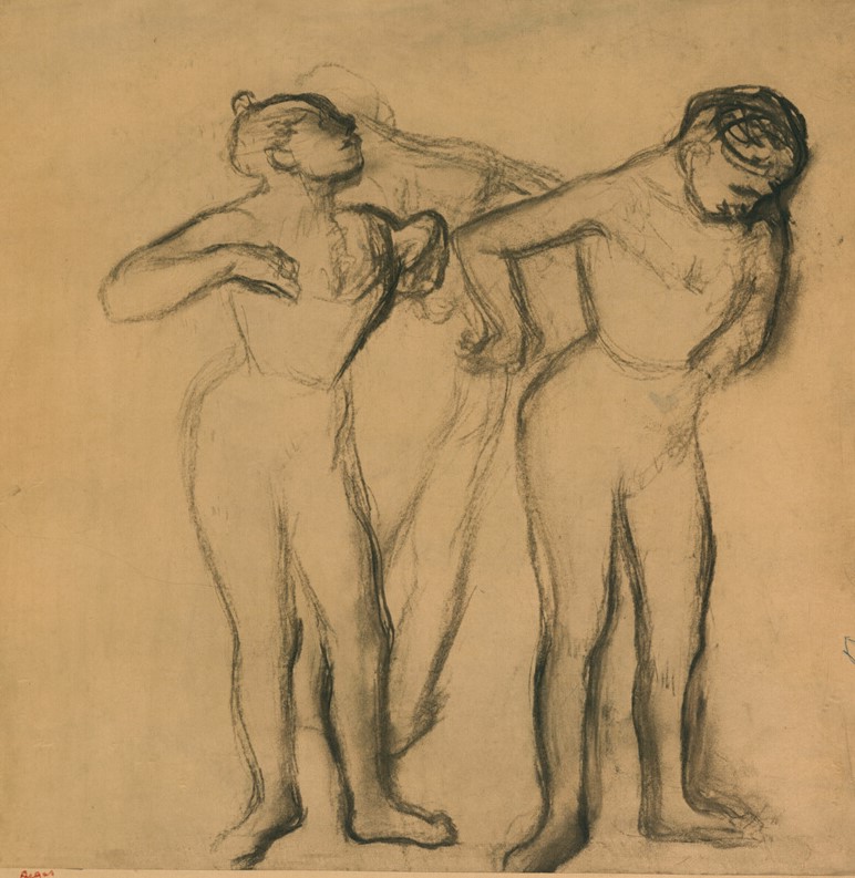The digital catalogue raisonné of the 1506 drawings by Degas that we are publishing naturally complements the one of the 1759 paintings and pastels already online. Never undertaken before, this catalogue raisonné enhances our knowledge of an artist for whom drawing was a major art form. Isn't his passion for Ingres proof of this? Through the variety of subjects and techniques, Degas gives drawing an essential place in his art, often at the basis of his projects and their evolution. Like the digital catalogue raisonné of paintings and pastels, the one for drawings is regularly expanded and updated. It includes all the subjects he treats in his paintings and pastels. More than 1200 drawings were found in his studio in December 1917 and were inventoried. They were then published and reproduced in the four catalogues of the posthumous sales of 1918-1919. Generally unsigned, they were stamped after these sales. This leads us to believe that Degas did not trade them, as his paintings and pastels were more sought after at the time. Our estimates are currently based on the inventories (Succession Degas, Nepveu-Degas) and on the four posthumous sales. During the sales, drawings were sold in lots, not described and not reproduced, which complicates any estimation, especially since the same stamps from the posthumous sales were also affixed to these separately sold drawings.