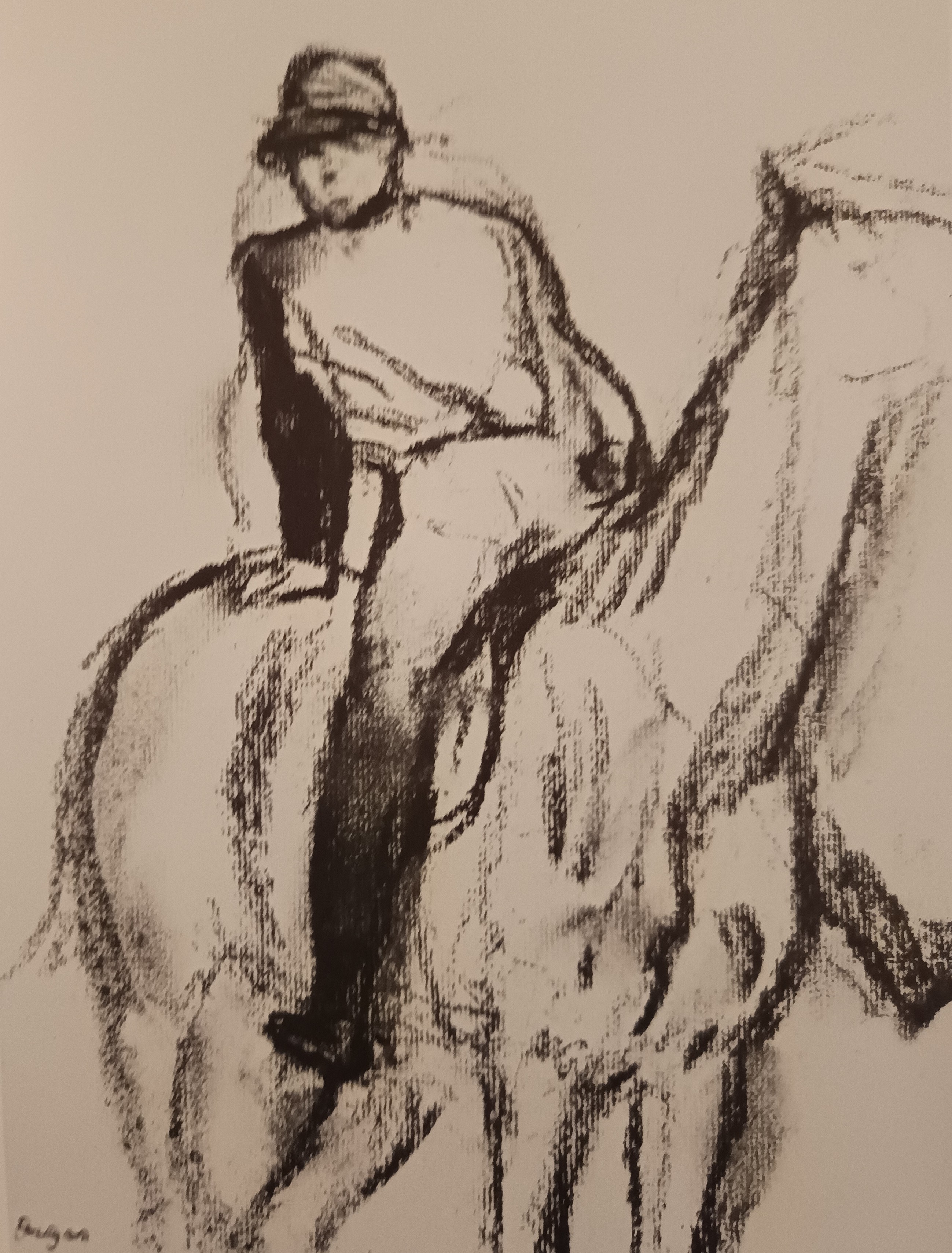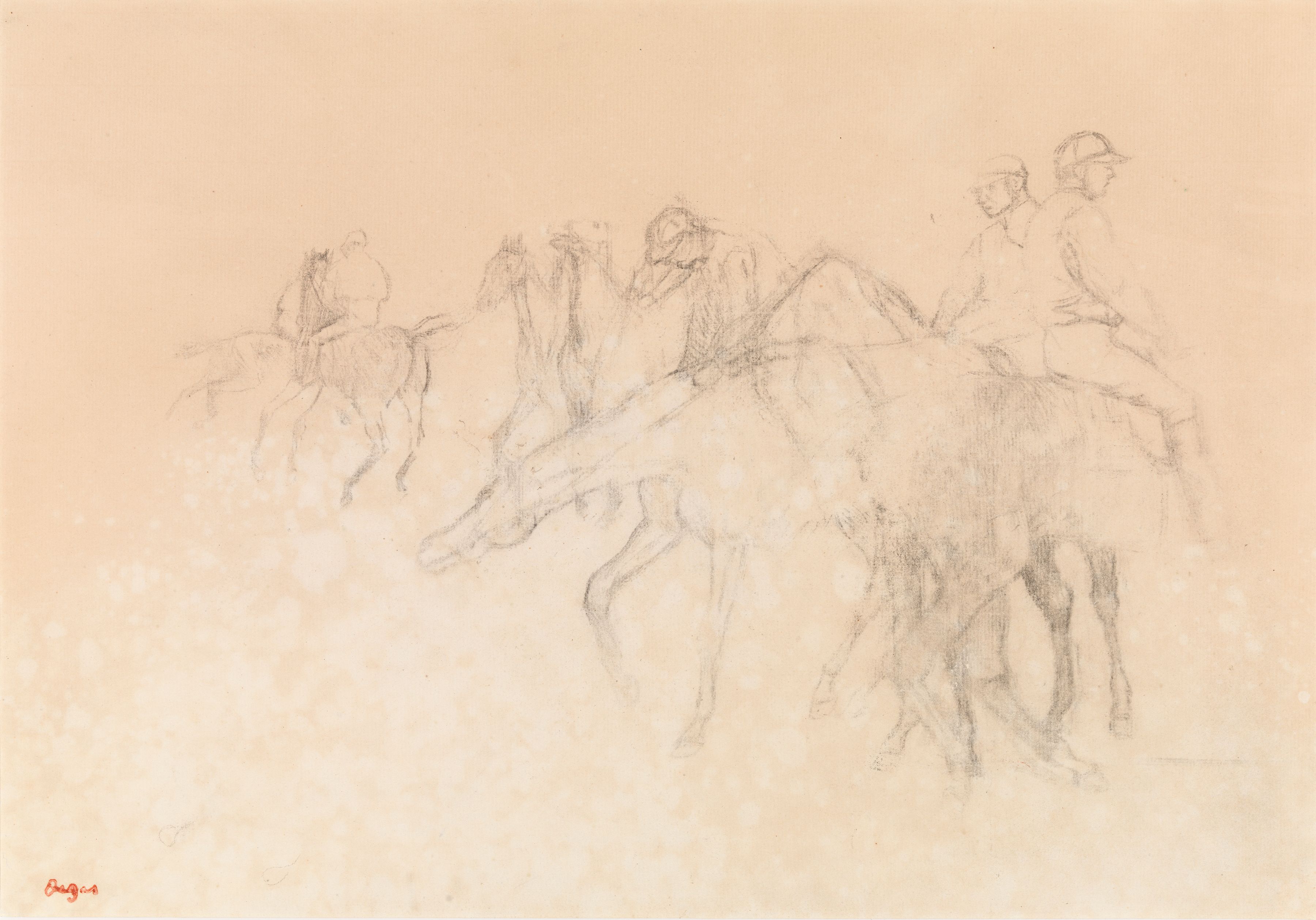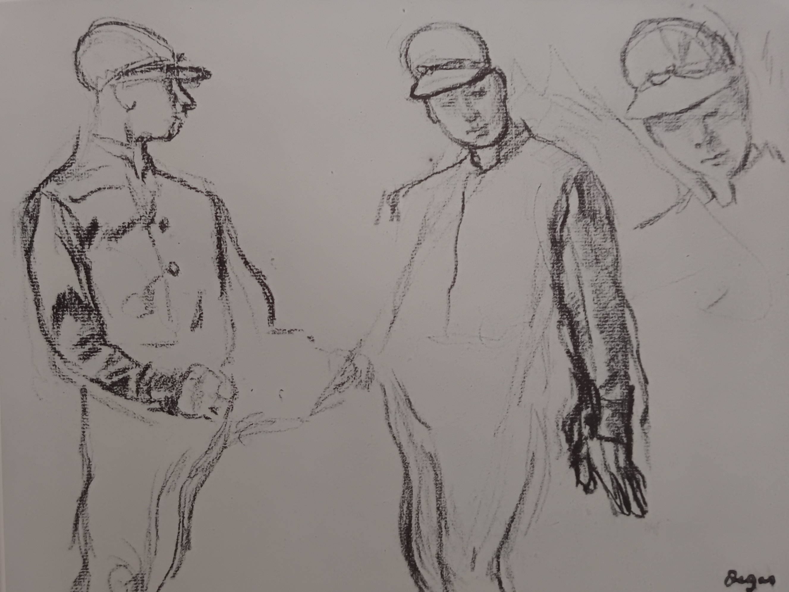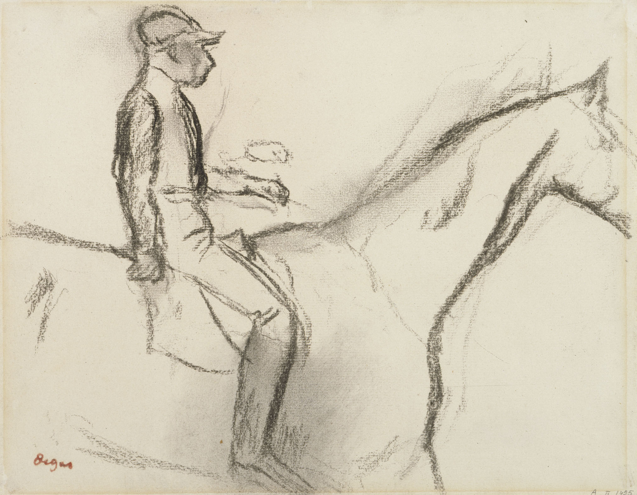 The digital catalogue raisonné of the 1506 drawings by Degas that we are publishing naturally complements the one of the 1759 paintings and pastels already online. Never undertaken before, this catalogue raisonné enhances our knowledge of an artist for whom drawing was a major art form. Isn't his passion for Ingres proof of this? Through the variety of subjects and techniques, Degas gives drawing an essential place in his art, often at the basis of his projects and their evolution. Like the digital catalogue raisonné of paintings and pastels, the one for drawings is regularly expanded and updated. It includes all the subjects he treats in his paintings and pastels. More than 1200 drawings were found in his studio in December 1917 and were inventoried. They were then published and reproduced in the four catalogues of the posthumous sales of 1918-1919. Generally unsigned, they were stamped after these sales. This leads us to believe that Degas did not trade them, as his paintings and pastels were more sought after at the time. Our estimates are currently based on the inventories (Succession Degas, Nepveu-Degas) and on the four posthumous sales. During the sales, drawings were sold in lots, not described and not reproduced, which complicates any estimation, especially since the same stamps from the posthumous sales were also affixed to these separately sold drawings.