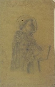 28.8 × 22 cm, Sanguine, crayon graphite avec rehauts d'aquarelle
