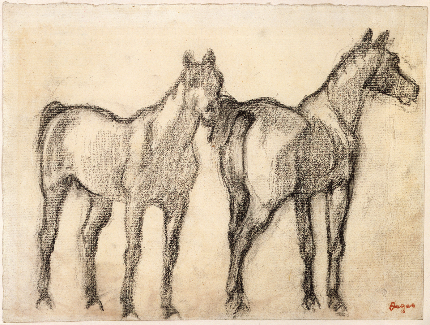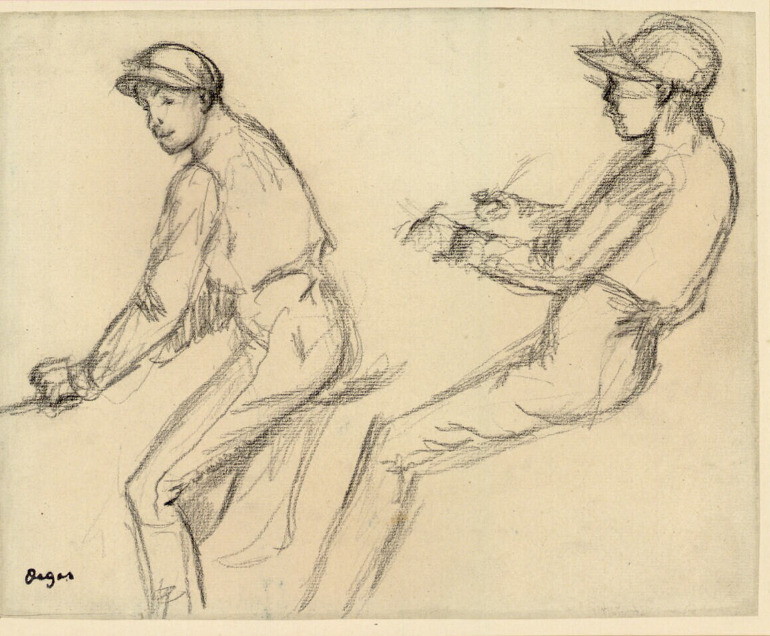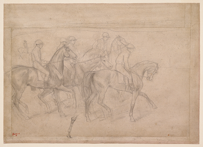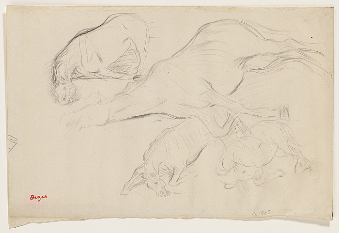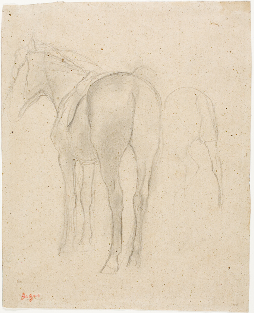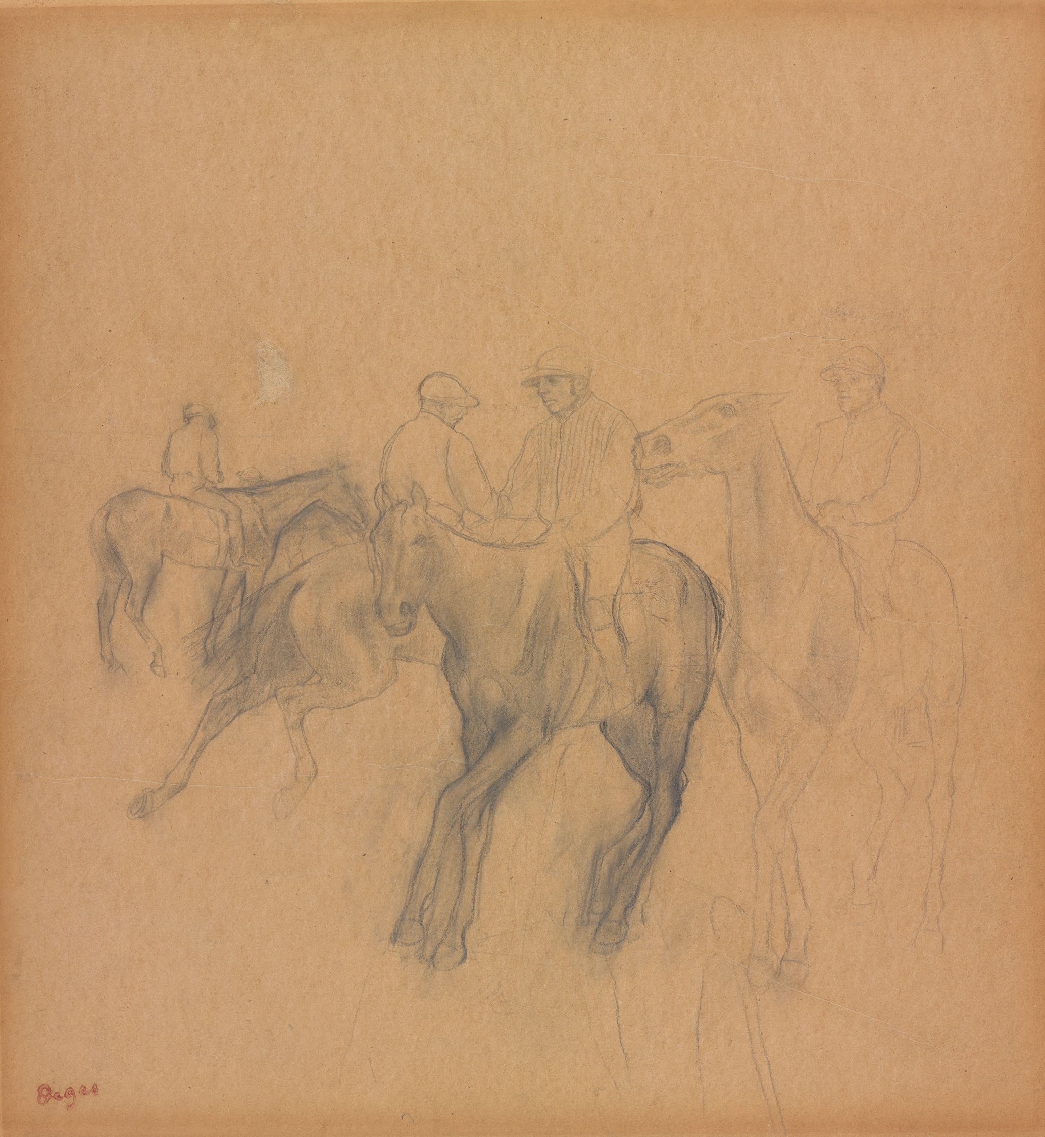 The digital catalogue raisonné of the 1506 drawings by Degas that we are publishing naturally complements the one of the 1759 paintings and pastels already online. Never undertaken before, this catalogue raisonné enhances our knowledge of an artist for whom drawing was a major art form. Isn't his passion for Ingres proof of this? Through the variety of subjects and techniques, Degas gives drawing an essential place in his art, often at the basis of his projects and their evolution. Like the digital catalogue raisonné of paintings and pastels, the one for drawings is regularly expanded and updated. It includes all the subjects he treats in his paintings and pastels. More than 1200 drawings were found in his studio in December 1917 and were inventoried. They were then published and reproduced in the four catalogues of the posthumous sales of 1918-1919. Generally unsigned, they were stamped after these sales. This leads us to believe that Degas did not trade them, as his paintings and pastels were more sought after at the time. Our estimates are currently based on the inventories (Succession Degas, Nepveu-Degas) and on the four posthumous sales. During the sales, drawings were sold in lots, not described and not reproduced, which complicates any estimation, especially since the same stamps from the posthumous sales were also affixed to these separately sold drawings.
