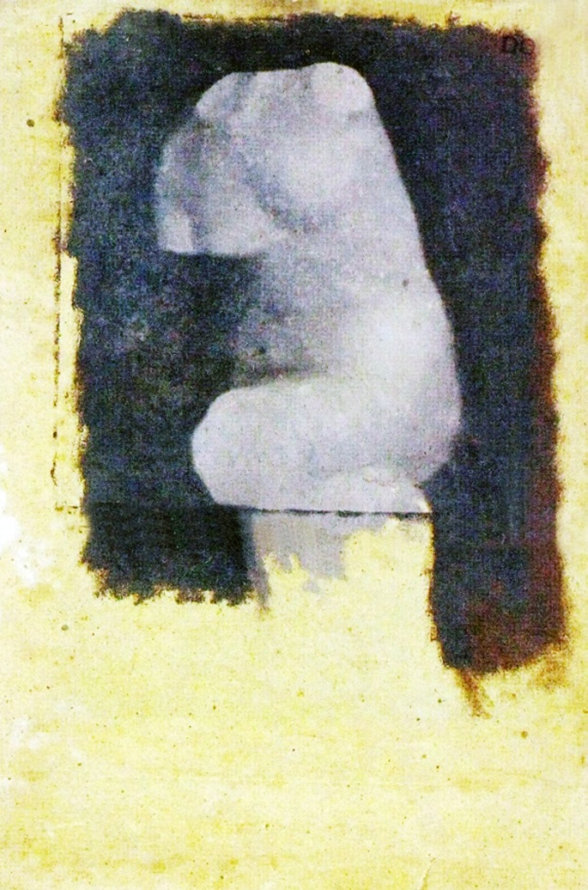 24 × 34 cm, Lavis de peinture noire à l'huile, rehauts de peinture blanche à l'huile