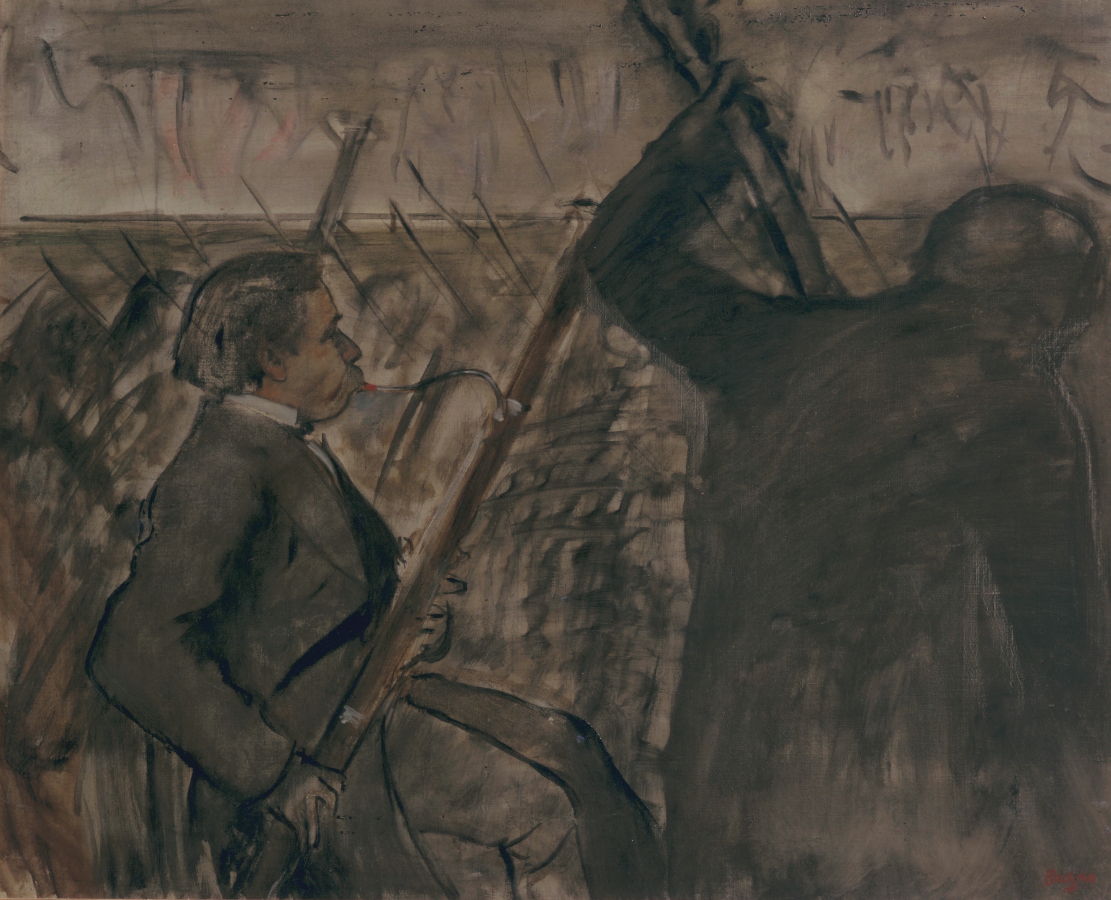 Les peintures présentent une autre facette de l'art de Degas. Il y traite certains sujets qu'on ne retrouve pas dans ses pastels touchant par exemple à la musique et l'Opéra comme Le père de Degas écoutant Pagans du Boston Museum of Fine Arts.