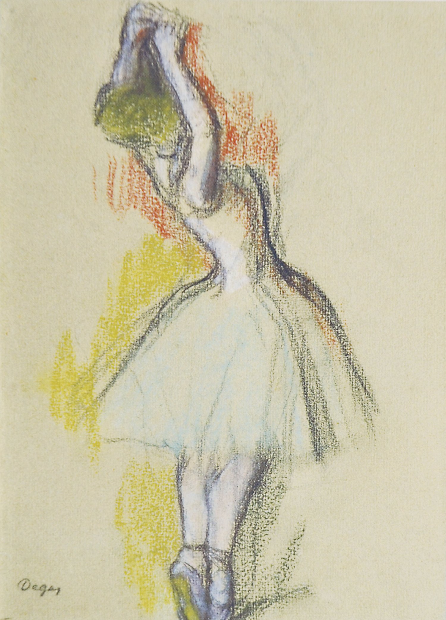Les pastels sont les œuvres les plus connues et les plus représentatives de l'art de Degas. Parmi les nombreux pastels de Degas, nous avons choisi cette Femme au miroir - Hamburger Kunsthalle (Hambourg) - reproduite en page d'accueil. Ici, Degas a choisi d'élégantes et harmonieuses couleurs montrant qu'il maîtrise parfaitement sa technique : comme Chez la modiste du musée Thyssen-Bornemizsa – Madrid - et sa Chanteuse en vert du Metropolitan Museum of Art, New York. Dans certains, il joue avec une couleur dominante, avec le vert dans ses Grandes danseuses, avec le bleu dans ses Deux danseuses au repos et avec le rose dans ses Danseuses du Fitzwilliam Museum, Cambridge. Pour ses pastels, Degas peut utiliser des supports variés : papier, panneau, carton et même toile comme pour ses Danseuses assises. Il se tourne aussi vers d'autres sujets tels que les baigneuses qu'illustre ce pastel Baigneuses de la National Gallery, Washington et les courses de chevaux comme Avant la course du Cleveland Museum of Art.